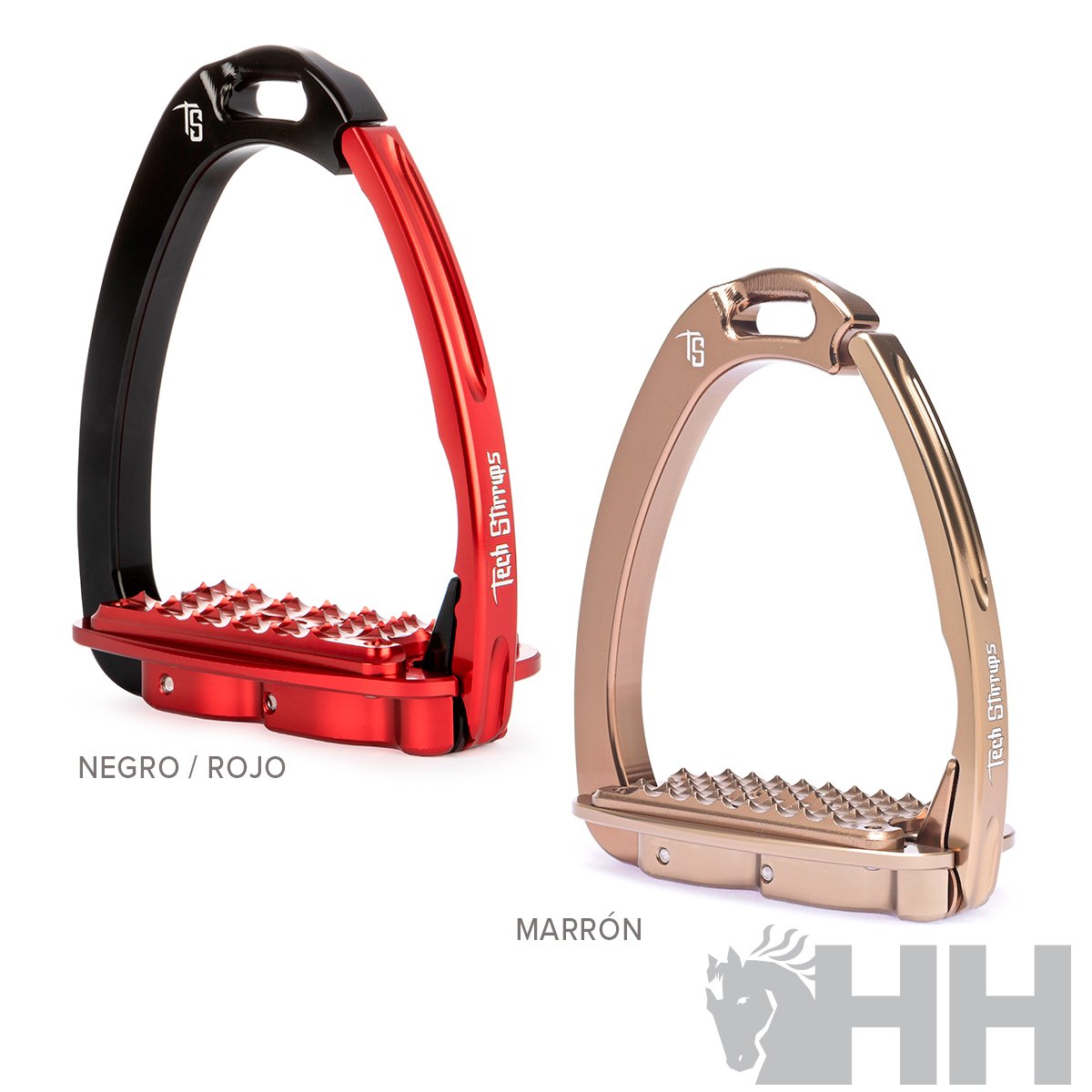 Todos los estribos Tech Stirrups se producen en ITALIA en sus propias instalaciones utilizando aluminio ERGAL en frío para ofrecer el más alto nivel de calidad y cada uno de sus productos ha sido diseñado con sus propias características técnicas y funcionales, para dar a cada jinete la oportunidad de elegir los estribos más adecuados para su disciplina y necesidades.