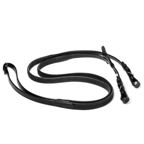 Riendas realizadas con goma muy flexible y material BIOTHANE en su interior para reforzarlas. El cuero utilizado es cuero vegetal de primera calidad procedente de USA y curtido de forma ECOLÓGICA también en USA. Ancho del cuero 5/8 » y goma 6/8 «. Posibilidad de hebillaje dorado ó inoxidable.